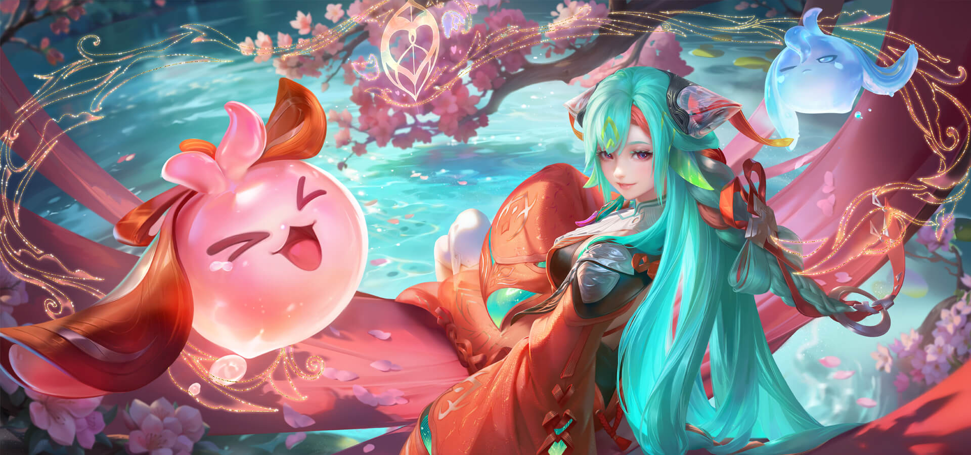 貂蝉·闭月,以月宫仙子貂蝉为原型,这款皮肤以其婉约气质著称。红色长裙流光溢彩,面容妆容精致,技能动画中,闭月之光照亮战场,优雅中带着致命的诱惑。